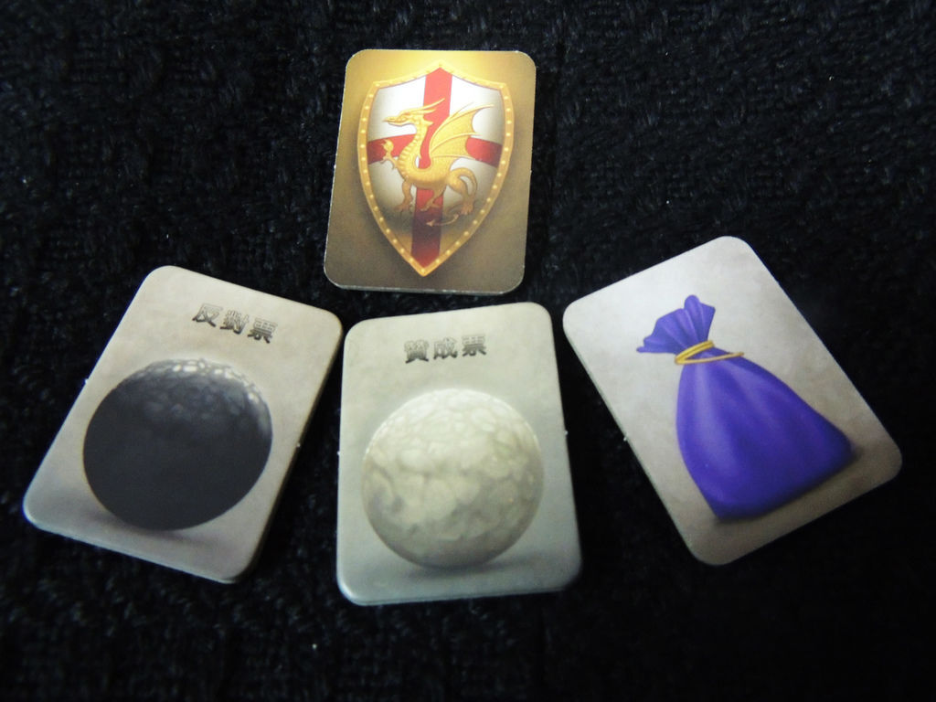 投票時用的紙牌。上面那個是被指派的人會得到的東西,讓大家可以清楚知道哪幾個人被指派。