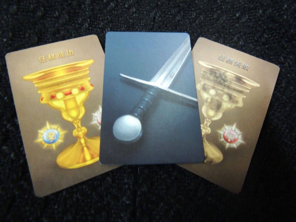 出任務時,每個出任務的人都會發兩張紙牌,一張「任務成功」一張「任務失敗」。所有出任務的人會各自選出一張丟到中間,然後一起洗一洗。好人的話,當然一定要出「任務成功」了,但只有有一張失敗卡,這次任務就是失敗了。
