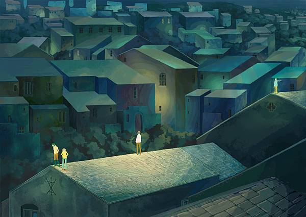 某塊屋頂上,某人正準備瞄準年輕人的腦袋。夕陽的餘光映在那人的臉上,我們可以看的出來,這是個女孩子。